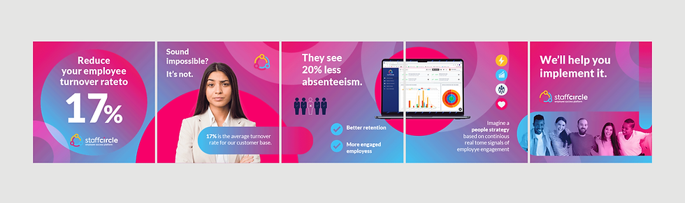 We reimagined the brand’s creative direction by moving away from its traditional illustrative style, opting instead to use authentic imagery of real people to bring performance management to life. These visuals captured genuine expressions and interactions, making the campaign feel grounded and approachable. To enhance the imagery, we incorporated creative background textures inspired by the brand’s design elements, adding a fresh and dynamic layer to the visuals.